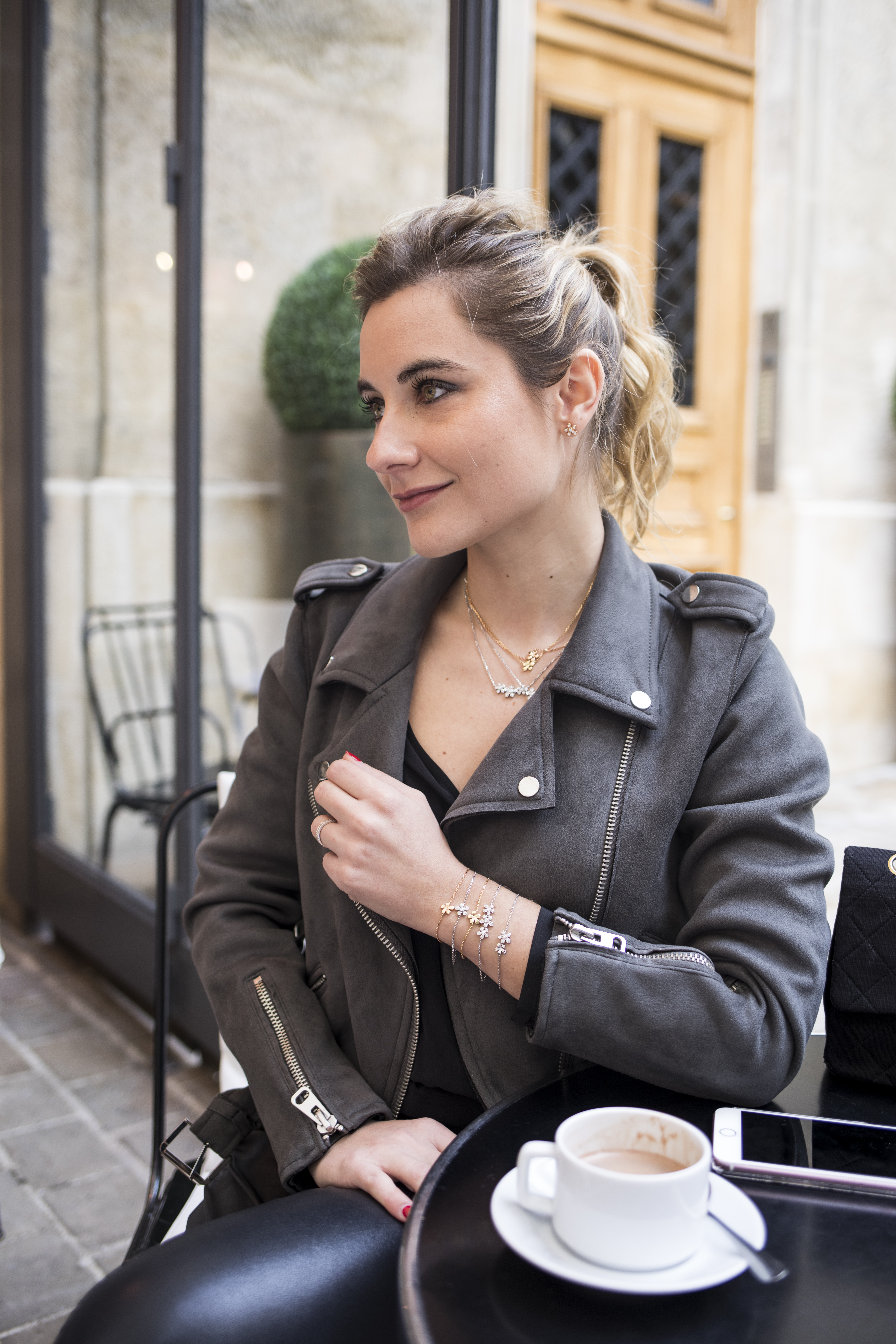 Aujourd’hui, je voulais vous présenter la collection de bijoux « Mini-Jasmin » par Louis Edouard Le Jeune, le joaillier dont je vous ai parlé récemment. Habitué à la haute-joaillerie, le bijoutier a crée cette fois-ci une collection plus abordable (démarre à 450€), casual, que l’on peut porter au quotidien et ne jamais enlever ! (c’est ce que je fais en général avec mes bijoux!) Je porte ici cette collection (bracelets, colliers et puces d’oreilles en solo, duo et trio de fleurs) avec un look décontracté et bohème-chic. Nous pourrions appeler ça du « précieux décomplexé » à porter aussi à la plage ou en voyage sans aucun soucis !