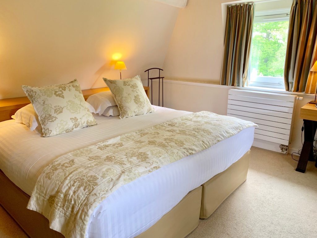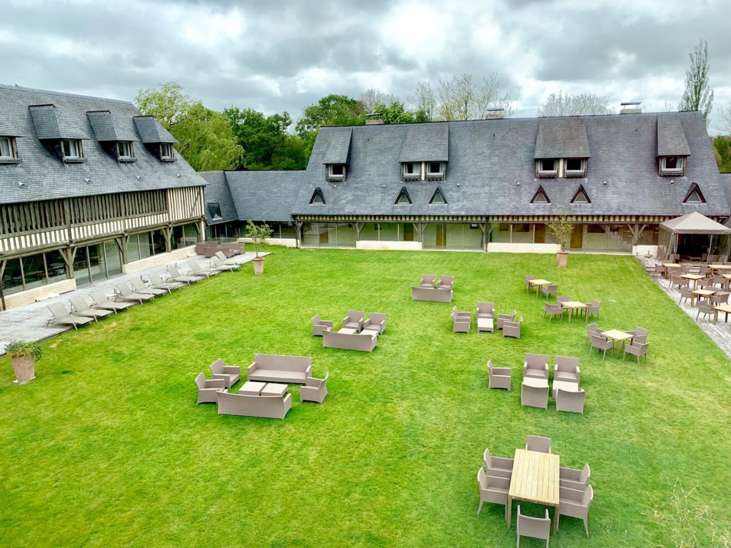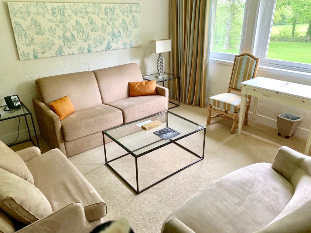 nIl y a quelques semaines, nous avons séjourné en amoureux à l’hôtel Les Manoirs de Tourgéville situé en Normandie, à cinq minutes en voiture de Deauville. Cette hôtel de charme quatre étoiles est un havre de paix dans un cadre paisible et séduisant. Nous avions une très jolie chambre en duplex avec une vue dégagée sur le parc.