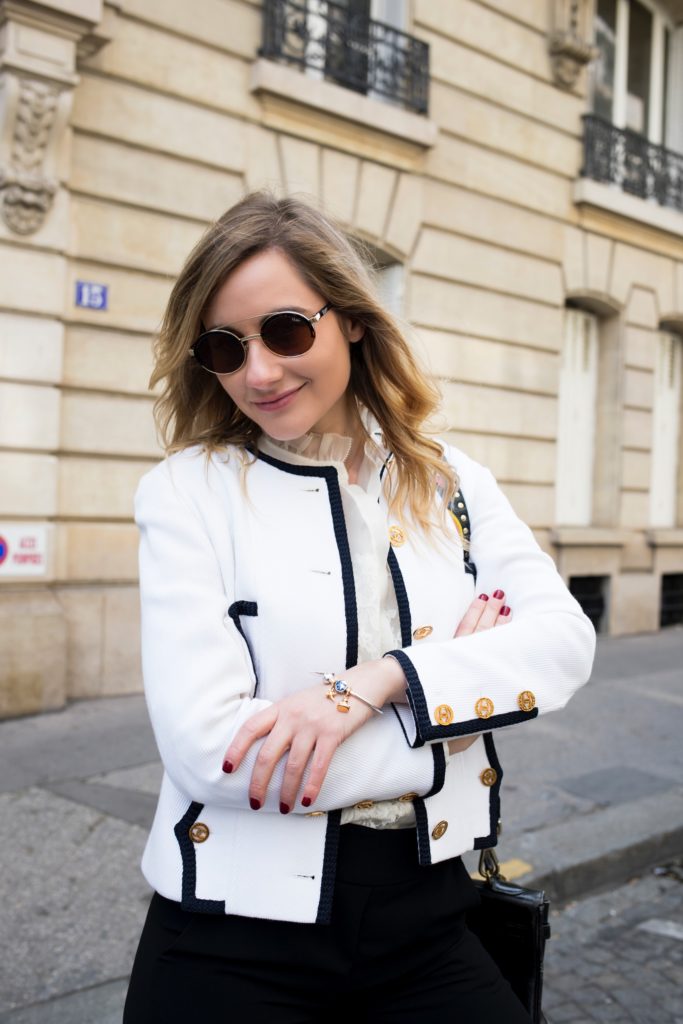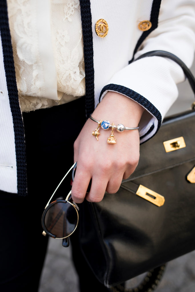J’ai toujours été fan depuis toute petite de Disney et de ses dessins animés. Cet univers féerique m’a fait rêver toute mon enfance et continue aujourd’hui de m’émerveiller, je suis restée une grande enfant! Quand j’ai découvert la collection Pandora x Aladdin, je suis tout de suite tombée sous le « charm » de la lampe magique et du palais des mille et une nuits qui me rappelle de doux souvenirs de jeunesse. J’associe ce bracelet avec mes looks du quotidien comme ici avec une petite veste blanche et noir très chic et un pantalon un peu ample et élégant. Selon moi, je pense qu’il n’y a pas d’âge pour porter du Disney, que ce soit via des bijoux, accessoires ou la représentation d’un personnage sur un tee-shirt par exemple.