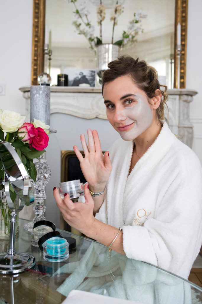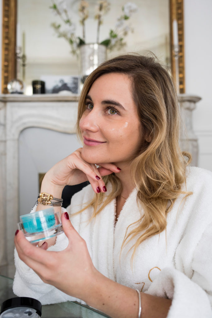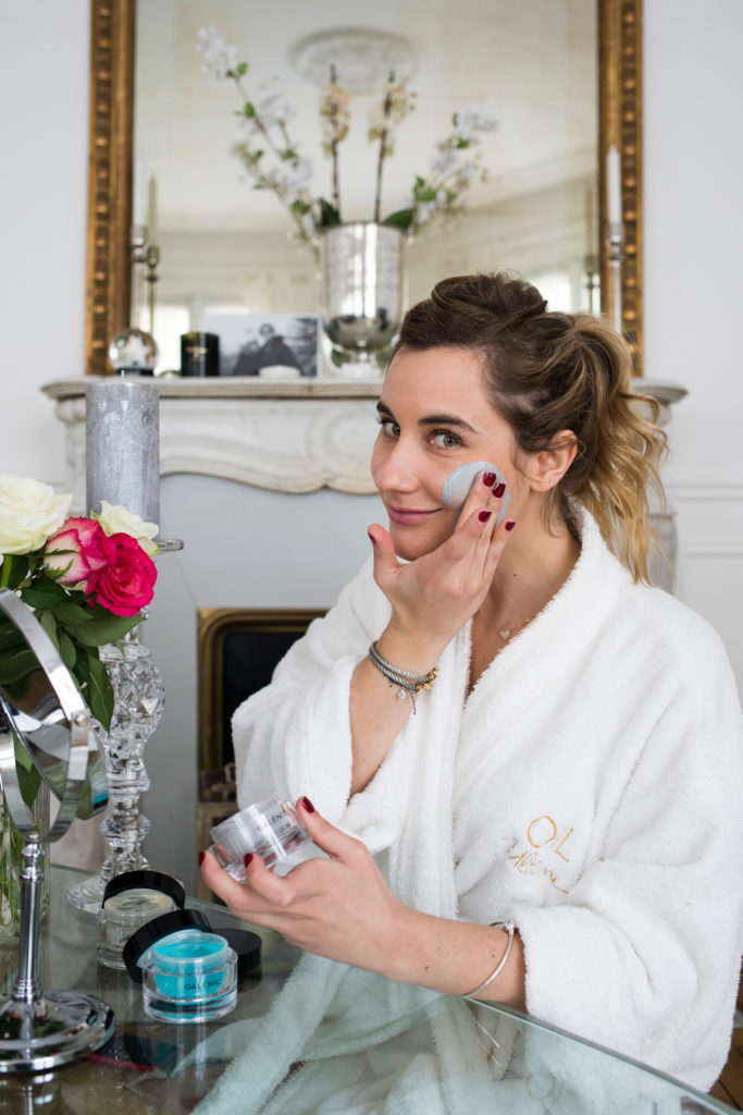 Je suis ensuite passée au deuxième masque, celui « froid purifiant » pour cette fois-ci matifier la peau, resserrer les pores et avoir un grain de peau régulier. Celui-ci est très important pour moi, car j’ai tendance à avoir la peau un peu grasse dans la journée. Avec sa formule au kaolin, une argile blanche naturelle douce reconnue pour ses propriétés absorbantes et purifiantes, ce masque m’aide à avoir la peau matifiée au quotidien et donc de ce fait à éviter les imperfections.