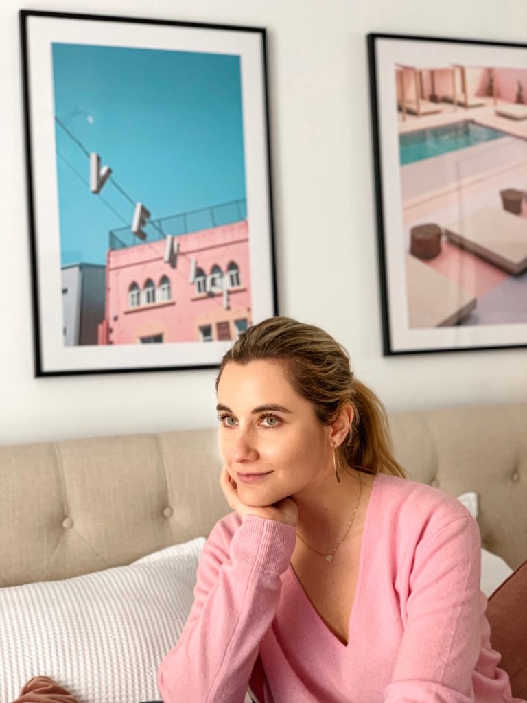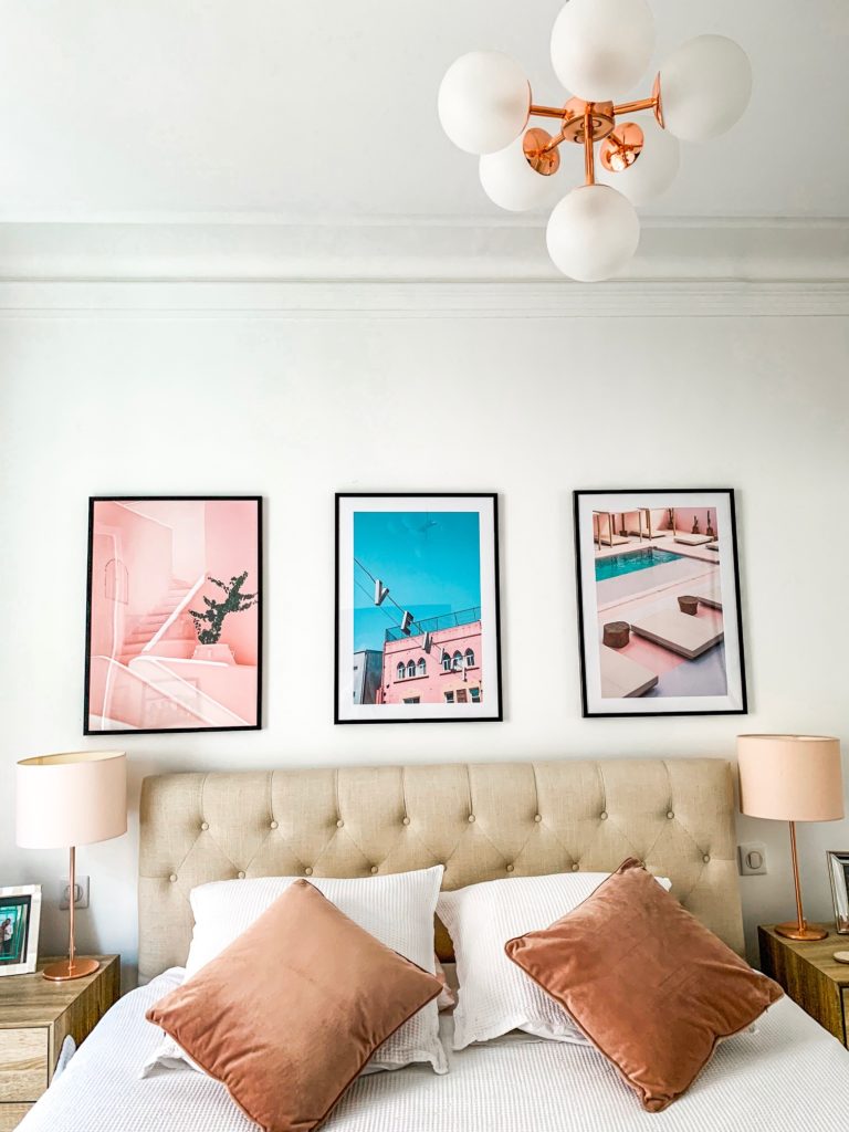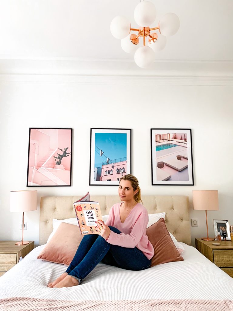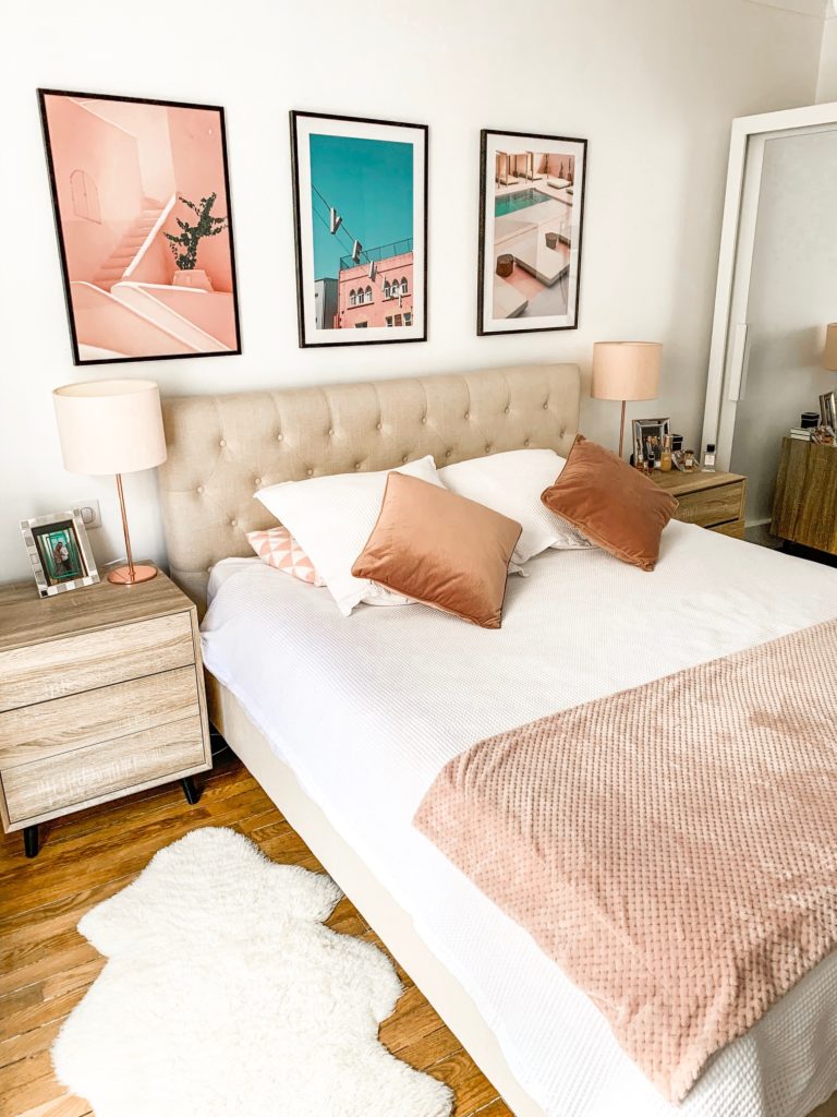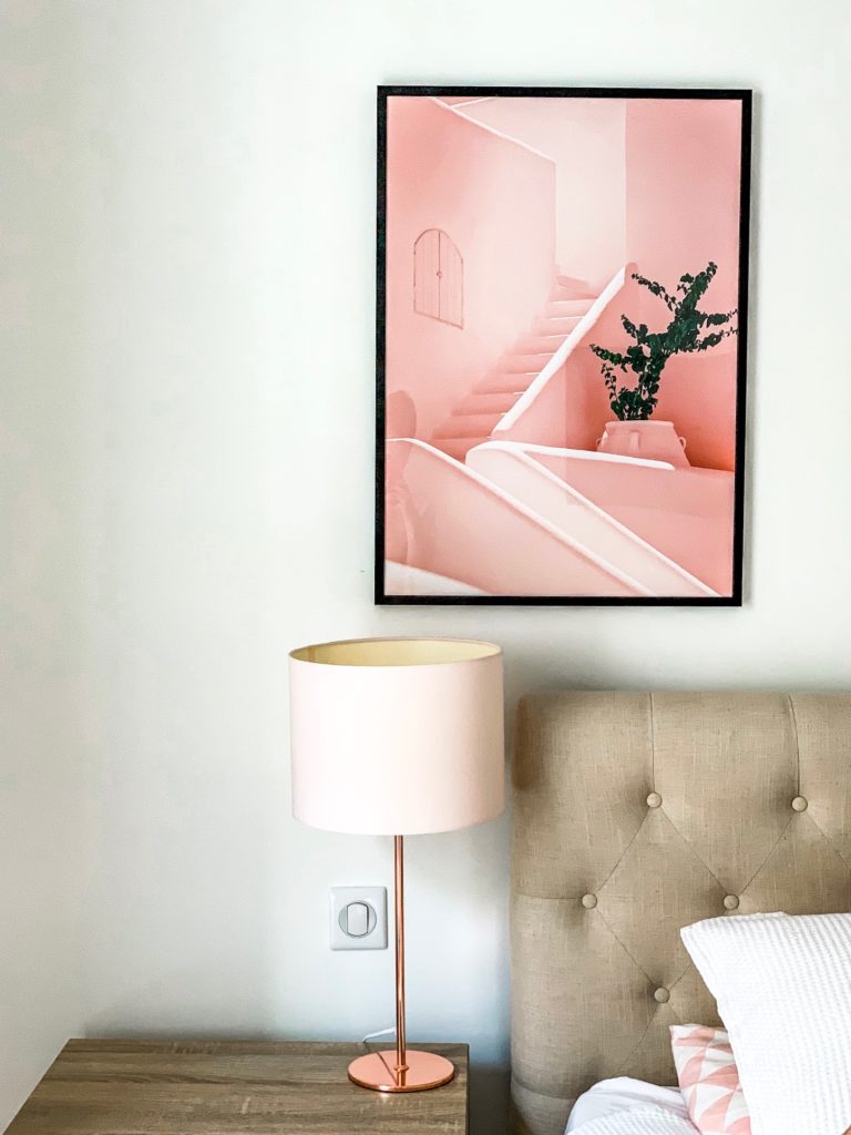 Vous l’avez surement remarqué sur les photos, le rose est ma couleur préférée et j’ai souhaité créer une chambre autour de cette univers poudré et féminin.